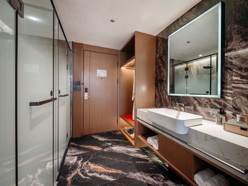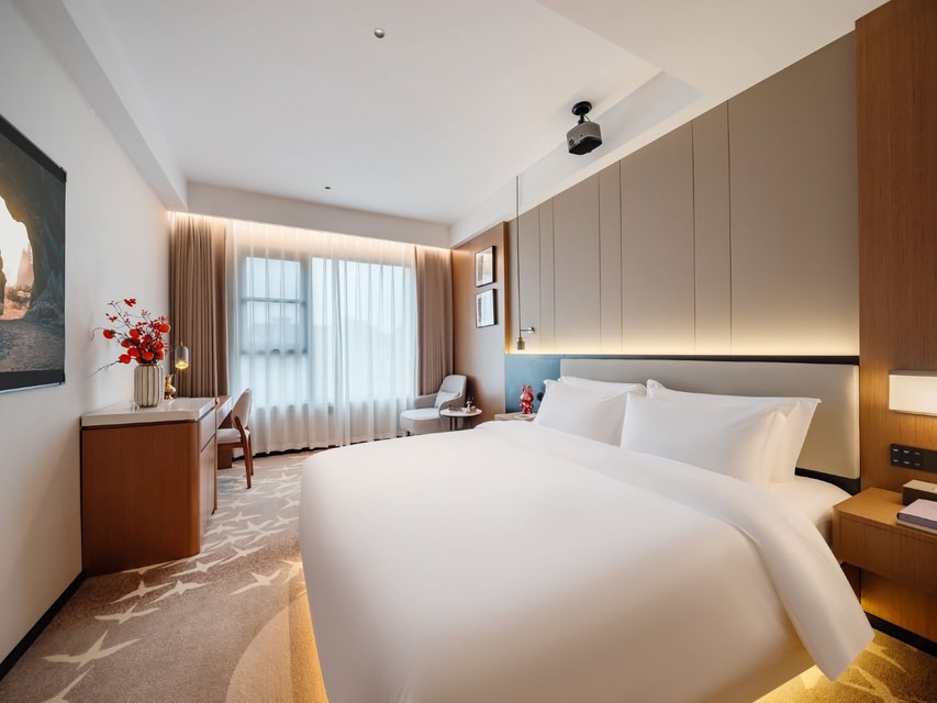 Here’s an English translation of your text, crafted to preserve its poetic and cultural essence: **"Different Cities, One Home – Welcome to Qionglai Laishan Hotel. ** Laishan Hotel in Qionglai writes your Linqiong story on a canvas of purity, with ink drawn from cultural heritage. Having hosted national, provincial, and municipal leaders alongside domestic and international guests, our newly renovated space now offers refined accommodations and a serene tea lounge, warmly inviting you to experience its charm. Nestled in the heart of Qionglai’s ancient city, the hotel immerses you in the elegance of Sima Xiangru’s poetic verses and the vibrant spirit of Zhuo Wenjun’s legendary tavern. Through its windows, framed like artworks, witness millennia-old rooftiles, lantern-lit streets, and mist-clad mountains merge into the scenery beside your pillow. Stroll just three minutes to resonate with the musical legacy of Wenjun’s hometown. Gaze at the dawn mist veiling the Drum Tower from your window. As incense lingers by the tea set, the bustling energy of Qionglai’s historic alleys sweeps into your room. Adjacent to the cultural hub of Wenmai Lane, the hotel is no mere rest stop—it’s a living salon where history and romance converse. At noon, savor tea in our second-floor lounge to the melody of rain. By dusk, wander Pingle Ancient Town’s bluestone paths under an oil-paper umbrella. Return to find lanterns aglow and tea fragrance still lingering, as Laishan quietly awaits your next journey into the soul of Sichuan. " This translation balances cultural specificity with lyrical flow, ensuring the hotel’s historical and aesthetic appeal resonates with English-speaking audiences. Let me know if you'd like adjustments!