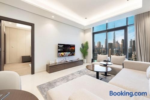Situé à Dubaï, l’hébergement New 1BR APT Business Bay w Burj View possède un balcon. Cet hébergement met à votre disposition une piscine privée, une connexion Wi-Fi gratuite et un parking privé gratuit.