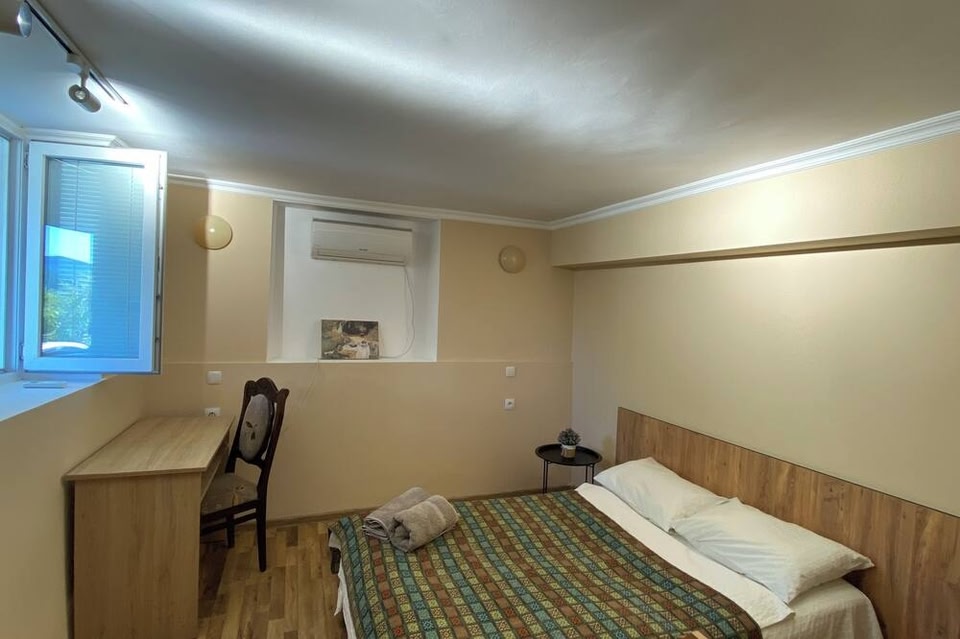 En choisissant Green House à Koutaïssi, vous profiterez d'un agréable séjour à moins de 5 minutes de voiture de Bazar Vert et Musée Historique d'État de Koutaïssi. Cette maison d'hôtes se trouve à 2,6 km de Cathédrale de Bagrati et à 3,2 km de Jardin Botanique de Koutaïssi. Profitez de la vue qui vous est offerte depuis une terrasse et un jardin, sans oublier les nombreux équipements et services qui caractérisent l'hébergement, notamment l'accès Wi-Fi à Internet gratuit. Parmi les équipements et services offerts par cette maison d'hôtes vous trouvez également une boutique de souvenirs/un kiosque à journaux, une cheminée dans le hall et une aire de pique-nique. Prenez un délicieux repas au restaurant et comblez tous vos petits creux en profitant du service d'étage proposé par cette maison d'hôtes. Pour que vous puissiez faire connaissance avec les autres convives, l'hébergement vous invite à participer à une réception gratuite organisée tous les jours. Pour bien finir la journée, vous trouverez sur place un bar / salon. Un petit déjeuner buffet est servi tous les jours de 09 h 00 à 11 h 00 moyennant un supplément. Les équipements et services proposés incluent des journaux gratuits dans le hall, une réception ouverte 24 h/24 et un personnel polyglotte. Un parking gratuit est disponible dans l'enceinte de l'hébergement. Les 5 chambres climatisées de l'hébergement vous invitent à la détente. Profitez de la cuisine commune/partagée pour préparer vos repas ! L'accès Wi-Fi à Internet gratuit vous permet de rester en contact avec le reste du monde. Une salle de bain privée avec une douche est à votre disposition. Vous y trouvez également des articles de toilette gratuits et des chaussons.