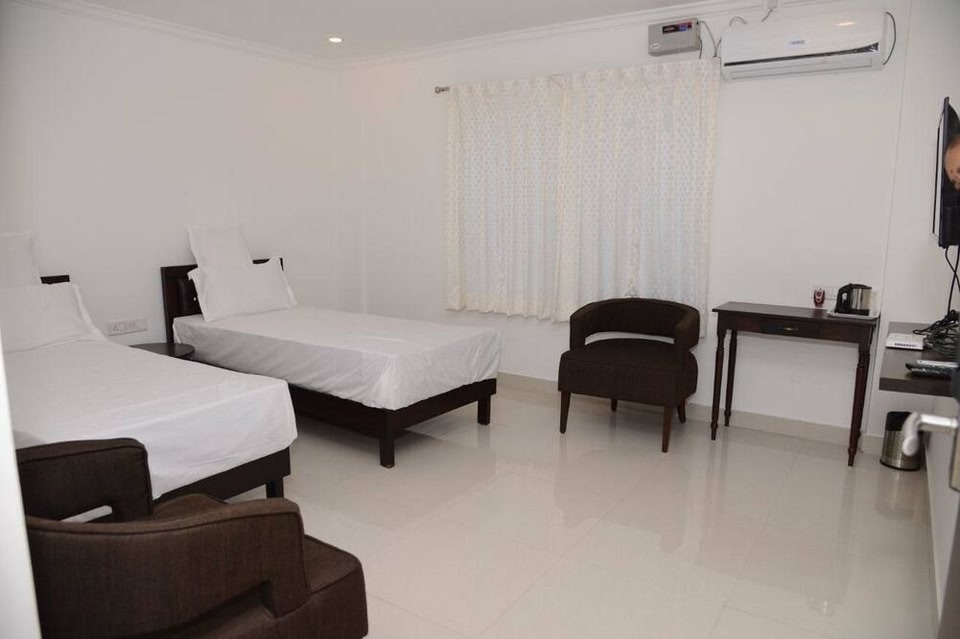 En choisissant Hotel RR Grand, vous profiterez d'un séjour à Bangalore (Hebbal), à 3 min en voiture de Manyata Tech Park et à 9 minutes de Palais de Bangalore. Cet hôtel se trouve à 9,6 km de M.G. Road et à 13 km de Bannerghatta Road. Profitez de la vue qui vous est offerte depuis un jardin et des nombreux équipements et services qui caractérisent l'hébergement, notamment l'accès Wi-Fi à Internet gratuit et un service de garde d'enfants (en supplément). Vous profiterez de repas généreux restaurant mais l'hébergement abrite également un café. Et pour combler tous vos petits creux, cet hôtel propose également un service d'étage 24 h/24. L'hébergement vous invite à rejoindre son bar/salon pour une petite pause bien méritée. Un petit déjeuner préparé à la commande gratuit est servi tous les jours de 08 h 00 à 10 h 00. Les équipements et services proposés incluent un centre d'affaires, des journaux gratuits dans le hall et un service de nettoyage à sec / blanchisserie. En échange d'un supplément, l'hébergement propose une navette vers et depuis l'aéroport (24 h/24) et un parking avec voiturier se trouve dans l'enceinte de l'hébergement. Choisissez une des 21 chambres dotées d'une télévision à écran plat. Les chambres sont dotées d'un balcon ou un patio. L'accès Wi-Fi à Internet gratuit vous permet de rester en contact avec le reste du monde et votre divertissement est assuré par des chaînes par câble. Les salles de bain comprennent une douche et des articles de toilette gratuits.