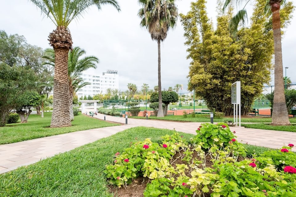 En choisissant Sahara Hotel Agadir, vous profiterez d'un séjour à Agadir (Centre-ville d'Agadir), à moins de 5 minutes en voiture de Souk El Had et Plage d'Agadir. Cet hôtel au bord de la plage se trouve à 3,7 km de Marina d'Agadir et à 24 km de Plage de Taghazout. Détendez-vous sur la plage privée et profitez des nombreuses infrastructures de loisirs proposées par l'hébergement, notamment courts de tennis extérieurs et une piscine extérieure. Cet hôtel propose également l'accès Wi-Fi à Internet gratuit, un service de conciergerie et un distributeur automatique de boissons et d'en-cas. Pendant votre séjour dans cet hôtel, vous pourrez manger dans un des 2 restaurants ou profiter du service d'étage 24 h/24. Si vous avez envie de vous détendre devant un petit verre, pas de panique, l'hébergement abrite un bar / salon et un bar en bord de piscine. Un petit déjeuner buffet est servi tous les jours de 07 h 00 à 10 h 00 moyennant un supplément. Les équipements et services proposés incluent un service de nettoyage à sec / blanchisserie, une réception ouverte 24 h/24 et une consigne à bagages. Un parking gratuit est disponible dans l'enceinte de l'hébergement. Avec une décoration personnalisée, les 264 chambres de l'hébergement vous invitent à la détente et comprennent un minibar et une télévision à écran plasma. Des chaînes par câble sont à votre disposition et vous invitent au divertissement. Une salle de bain privée avec une baignoire ou une douche est à votre disposition. Vous y trouvez également des articles de toilette gratuits et un bidet. Les équipements et services offerts par l'hébergement comprennent un téléphone, mais aussi un coffre-fort et un bureau.