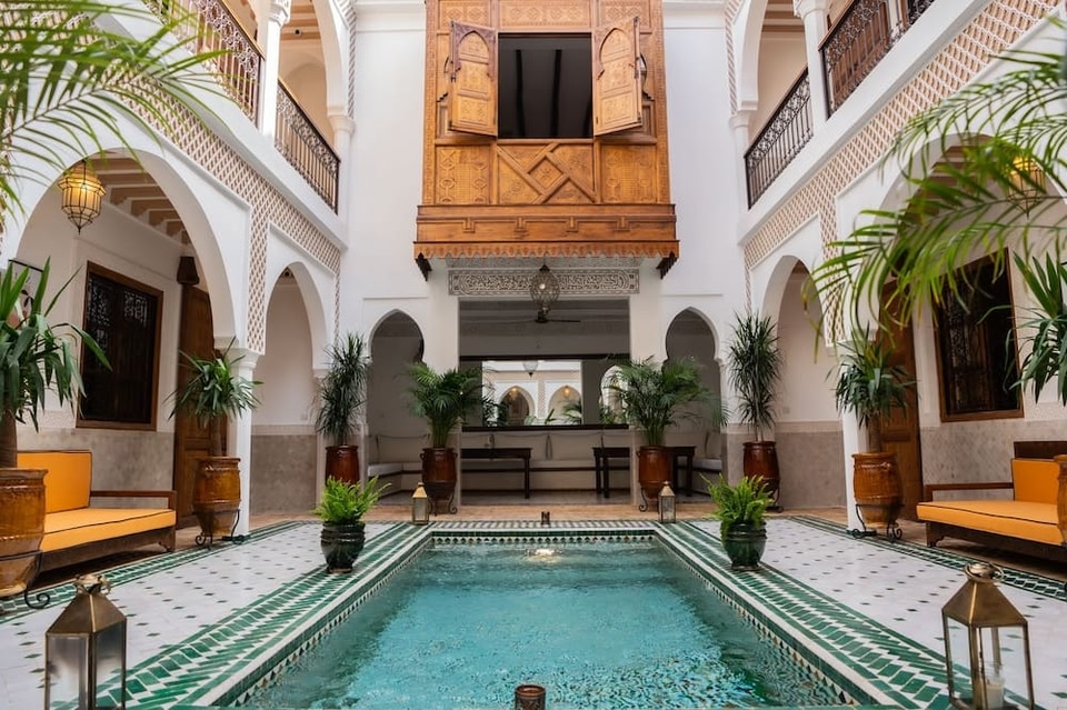 En choisissant Riad Nelia, vous profiterez d'un séjour en plein centre de Marrakech, à 3 minutes de voiture de Place Jemaa el-Fnaa et à 6 minutes de Palais des Congrès. Ce riad marocain avec spa se trouve à 4,1 km de Jardin Majorelle et à 0,1 km de Musée Dar Si Saïd. Rejoignez le spa de l'hébergement, un centre bien-être qui propose des massages, des soins corporels et des soins du visage, et permettez qu'on prenne soin de vous. N'hésitez surtout pas à profiter des nombreuses infrastructures de loisirs qui incluent notamment 2 piscines extérieures et un hammam. Ce riad marocain propose également l'accès Wi-Fi à Internet gratuit et un distributeur automatique de boissons et d'en-cas. Vous profiterez de repas généreux restaurant mais l'hébergement abrite également un café. Et pour combler tous vos petits creux, ce riad marocain propose également un service d'étage 24 h/24. Pour que vous puissiez faire connaissance avec les autres convives, l'hébergement vous invite à participer à une réception gratuite organisée tous les jours. Un petit déjeuner préparé à la commande gratuit est servi tous les jours de 08 h 00 à 11 h 00. Les équipements et services proposés incluent un service de nettoyage à sec / blanchisserie, une réception ouverte 24 h/24 et une consigne à bagages. Une navette vers et depuis l'aéroport est disponible en échange d'un supplément (24 h/24). Les 11 chambres climatisées de l'hébergement vous invitent à la détente. L'accès Wi-Fi à Internet gratuit vous permet de rester en contact avec le reste du monde et votre divertissement est assuré par une enceinte connectée. Une salle de bain privée avec une douche est à votre disposition. Vous y trouvez également des articles de toilette de luxe et un sèche-cheveux. Les équipements et services offerts par l'hébergement comprennent un coffre-fort et un service de couverture. Le service d'entretien est assuré tous les jours.