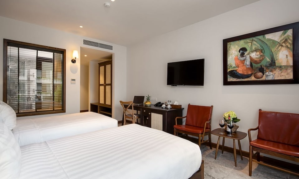 En choisissant Salmalia Boutique Hotel & Spa à Da Nang (Sơn Trà), vous serez à 3 min de marche de Plage de My Khe et à 3 min en voiture de Pont Dragon. Cet hôtel avec spa se trouve à 2,8 km de Museum of Cham Sculpture (musée de sculpture Cham) et à 3,3 km de Cathédrale de Da Nang. Rejoignez le spa de l'hébergement, un centre bien-être qui propose des massages, et permettez qu'on prenne soin de vous. Profitez des nombreuses infrastructures de loisirs offertes par l'hébergement et qui comprennent notamment une piscine extérieure, un centre de fitness et un service de location de vélos. Parmi les équipements et services offerts par cet hôtel vous trouvez également l'accès Wi-Fi à Internet gratuit et un service de conciergerie. De délicieuses spécialités Cuisine locale et internationale attendent les plus gourmands pour le déjeuner et le dîner à Salmalia, un restaurant idéal pour une soirée relaxantes en famille ou avec votre moitié. Si vous préférez le confort de votre chambre, vous pourrez compter sur un service d'étage (horaires limités) très pratique.La journée a été harassante ? L'hébergement abrite un bar / salon et un bar en bord de piscine, idéal pour se détendre autour d'un verre de vin ou d'un cocktail rafraîchissant. Les équipements et services proposés incluent un service d'arrivée express, un service de départ express et un service de nettoyage à sec / blanchisserie. Un parking gratuit est disponible dans l'enceinte de l'hébergement. Les 41 chambres climatisées de l'hébergement vous invitent à la détente et comprennent un minibar et une télévision à écran plat. L'accès Wi-Fi à Internet gratuit vous permet de rester en contact avec le reste du monde et votre divertissement est assuré par des chaînes par câble. Les salles de bain comprennent une baignoire relaxante profonde et des articles de toilette gratuits. Les équipements et services offerts par l'hébergement comprennent un téléphone, mais aussi un coffre-fort et un bureau.