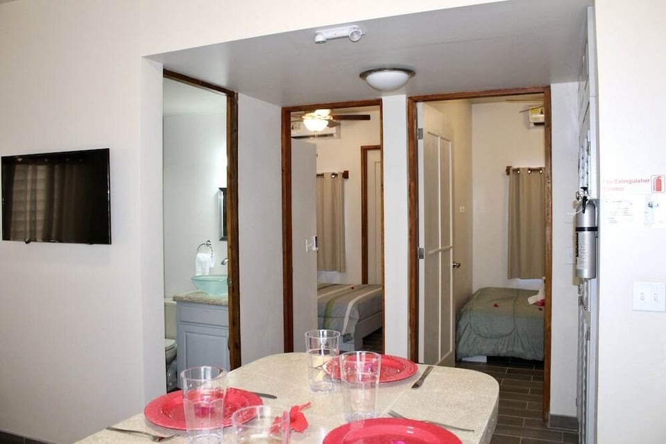 San Pedro ne manque pas de choses à découvrir ; San Pablo Villas vous fait profiter près de l'aéroport et se trouve à moins d'un quart d'heure à pied de Cayes du Belize et de Black & White Cultural Entertainment Center (centre culturel). Cet appartement se trouve à 15,9 km de Plage Secret Beach et à 2,6 km de San Pedro Artisans Market. Profitez de la vue qui vous est offerte depuis une terrasse sur le toit et un jardin, sans oublier les nombreux équipements et services qui caractérisent l'hébergement, notamment un service de conciergerie. Une navette payante vous conduit jusqu'à la plage n deux temps trois mouvements. Les équipements et services proposés incluent un personnel polyglotte, une consigne à bagages et une laverie. En échange d'un supplément, vous pouvez profiter des services d'une navette vers le terminal des ferrys. De plus un parking gratuit se trouve dans l'enceinte de l'hébergement. Passez un séjour comme il se doit dans une des 3 chambres avec une décoration personnalisée de l'hébergement et profitez des nombreux équipements à votre disposition, notamment une cuisine avec un grand réfrigérateur/congélateur et four. Les chambres sont dotées d'un balcon ou patio aménagé. Une télévision à écran plat 40 pouces avec chaînes par câble assure votre divertissement et l'accès Wi-Fi à Internet gratuit vous permet de rester en contact avec le reste du monde. Les équipements et services offerts par l'hébergement comprennent un coffre-fort et un coin salon séparé, mais aussi un téléphone avec des appels locaux gratuits.