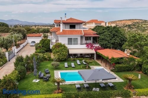 Situé à Koropíon, l’hébergement Olive Grove Villa propose une piscine extérieure, une salle de sport et un bain à remous. Il dispose également d’une terrasse offrant une vue sur la mer et la montagne.