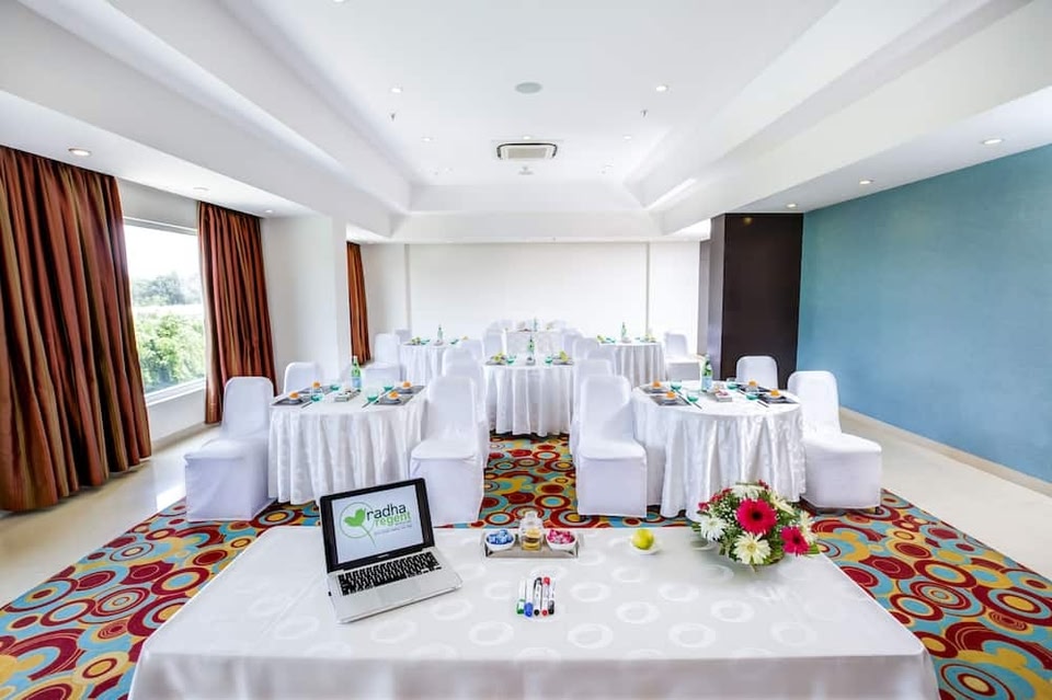En choisissant Radha Regent - Electronics City, vous profiterez d'un séjour en plein centre de Bangalore, (Parc industriel Electronics City), à moins de 15 minutes en voiture de Bannerghatta Road et Infosys Campus. Cet hôtel se trouve à 18,6 km de M.G. Road et à 19,1 km de UB City. N'hésitez pas à profiter des nombreuses infrastructures de loisirs à disposition et qui incluent notamment un centre de remise en forme et une piscine extérieure. Parmi les équipements et services offerts par cet hôtel vous trouvez également l'accès Wi-Fi à Internet gratuit, un service de conciergerie et un salon de coiffure. Pendant votre séjour dans cet hôtel, vous pourrez manger dans l'un de ses 2 restaurants ou un café, sans oublier de profiter du service d'étage 24 h/24. La journée a été harassante ? L'hébergement abrite un bar / salon et un bar en bord de piscine, idéal pour se détendre autour d'un verre de vin ou d'un cocktail rafraîchissant. Un petit déjeuner à emporter est servi tous les jours de 07 h 30 à 10 h 30 moyennant un supplément. Les équipements et services proposés incluent l'accès à internet gratuit à Internet, un centre d'affaires et un service de location de limousines/berlines. Les espaces événements de cet hôtel comprennent un espace de conférence et une salle de réunion. En échange d'un supplément, l'hébergement propose une navette vers et depuis l'aéroport (24 h/24) et un parking avec voiturier se trouve dans l'enceinte de l'hébergement. Les 104 chambres de l'hébergement vous invitent à la détente et comprennent un réfrigérateur et un minibar. Votre chambre est équipée d'un lit Tempur-Pedic préparé avec des draps en coton égyptien. Un accès au réseau Internet Wi-Fi et câblé est offert gratuitement, alors qu'une télévision LCD avec chaînes par câble vous réserve des moments de détente. Une salle de bain privée avec une douche est à votre disposition. Vous y trouvez également un pommeau de douche à « effet pluie » et des articles de toilette gratuits.