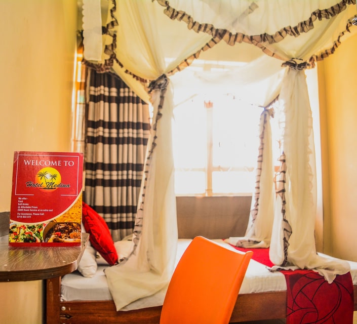 En choisissant Medina Hotel, vous profiterez d'un séjour en plein centre de Nairobi, à moins de 15 minutes en voiture de Parc national de Nairobi et Office des Nations unies à Nairobi. Cet hôtel se trouve à 11,5 km de Centre commercial Thika Road Mall et à 0,5 km de Archives nationales. Profitez des nombreux équipements et services qui caractérisent l'hébergement, notamment l'accès Wi-Fi à Internet gratuit et un service d'assistance pour les visites touristiques ou l'achat de billets. De délicieuses spécialités Cuisine locale et internationale attendent les plus gourmands pour le déjeuner et le dîner à Medina, un restaurant idéal pour une soirée relaxantes en famille ou avec votre moitié. Si vous préférez le confort de votre chambre, vous pourrez compter sur un service d'étage 24 h/24 très pratique.Un petit déjeuner continental est servi tous les jours de 07 h 00 à 09 h 30 moyennant un supplément. Les équipements et services proposés incluent des journaux gratuits dans le hall, une réception ouverte 24 h/24 et un personnel polyglotte. Un parking gratuit est disponible dans l'enceinte de l'hébergement. Choisissez une des 36 chambres dotées d'une télévision à écran plat. L'accès Wi-Fi à Internet gratuit vous permet de rester en contact avec le reste du monde. Une salle de bain privée avec une baignoire relaxante profonde et des articles de toilette gratuits est à votre disposition. Les prestations offertes par l'hébergement comprennent un bureau et le service d'entretien est assuré tous les jours.