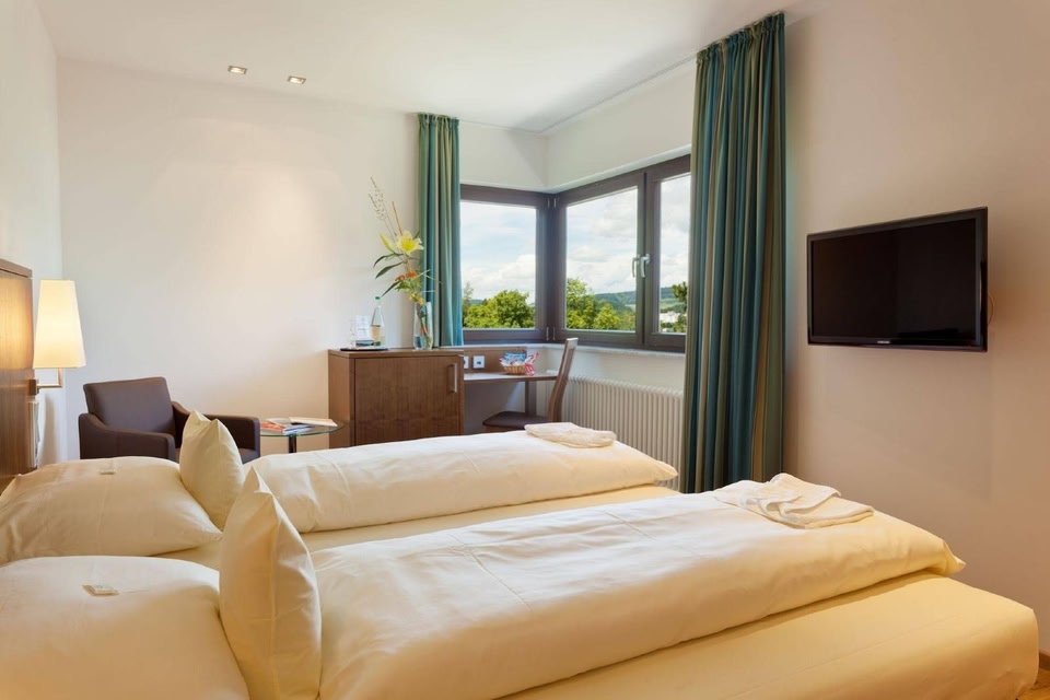 Uberlingen ne manque pas de choses à découvrir : Parkhotel St. Leonhard vous fait profiter près de la plage et se trouve à moins de 5 minutes en voiture de Plage du Yacht Club du Lac de Constance à Überlingen. Cet hôtel avec spa se trouve à 40,7 km de Île de Mainau et à 2,5 km de Münster Saint-Nicolas. Rejoignez le spa de l'hébergement, un centre bien-être qui propose des massages, des soins corporels et des soins du visage, et permettez qu'on prenne soin de vous. Si vous mettez la détente avant toute autre chose, n'hésitez pas à profiter des nombreuses infrastructures de loisirs proposées par l'hébergement et qui incluent notamment courts de tennis extérieurs, une piscine couverte et un centre de fitness. Cet hôtel propose également l'accès Wi-Fi à Internet gratuit, des magasins et un service d'organisation de mariages. Vous découvrirez de nombreuses spécialités Cuisine locale et internationale proposée par Restaurant, l'un des 2 restaurants de cet hôtel ou profitez du service d'étage (horaires limités), idéal pour une soirée cocooning en amoureux ou en solo. Si vous avez un petit creux pendant la journée, vous trouverez aussi un café sur place. Pour bien finir la journée, vous trouverez sur place un bar / salon. Un petit déjeuner continental gratuit est servi tous les jours de 07 h 00 à 10 h 00. Les équipements et services proposés incluent l'accès à internet gratuit à Internet, un poste informatique et des journaux gratuits dans le hall. Si vous devez organiser une réunion à Uberlingen, faites confiance à cet hôtel qui dispose d'espaces événements mesurant 815 mètres carrés et comprenant un espace de conférence et des salles de réunion. Avec un ameublement personnalisé, les 183 chambres de l'hébergement vous invitent à la détente et comprennent un mini-bar avec certains articles gratuits et une télévision à écran plat. Un accès gratuit au réseau Internet Wi-Fi et câblé vous permet de rester en contact avec le reste du monde et des chaînes par satellite assurent votre divertissement. Les salles de bain comprennent des articles de toilette gratuits et un sèche-cheveux. Les équipements et services offerts par l'hébergement comprennent un téléphone, mais aussi un coffre-fort et un bureau.