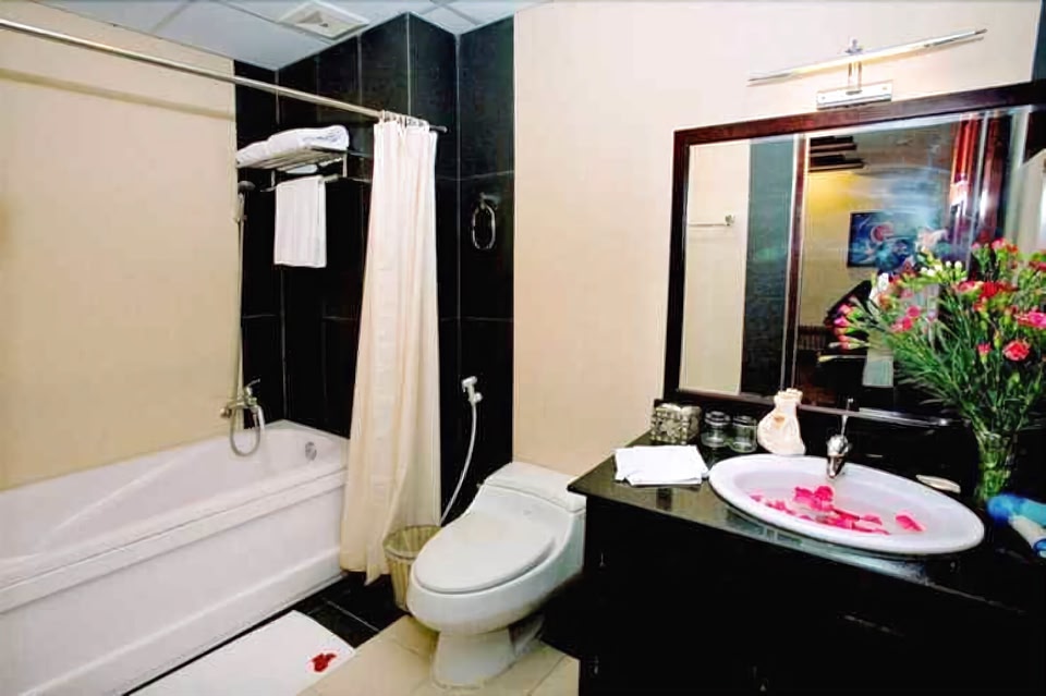 À Ban-Me-Thuot, Tuan Vu Hotel vous promet de passer un séjour exceptionnel. Les sympathiques Monument de la victoire et Village Ako Dhong figurent parmi les points de repère locaux, et pour prendre un bon bain de culture, plongez sur l'incontournable Musée du Monde du Café. Hôtel tout inclus avec réception ouverte 24 h/24 et restaurantUn restaurant, un bar / salon et un service de conciergerie sont à votre disposition dans cet hôtel. Le Wi-Fi gratuit dans les parties communes et le parking sans voiturier gratuit sont aussi proposés. Un service de nettoyage à sec / blanchisserie, une réception ouverte 24 h/24 et un service d'arrivée express sont également disponibles sur place. Tuan Vu Hotel possède 80 chambres accessibles par des couloirs extérieurs. Toutes sont dotées de la climatisation, des minibars et des coffres-forts suffisamment grands pour accueillir un ordinateur portable. Chaque chambre bénéficie d'une décoration personnalisée. Les lits sont dotés de matelas en mousse à mémoire de forme. Une télévision LED 40 pouces propose des chaînes thématiques par câble. Les salles de bain comprennent une baignoire ou une douche avec un pommeau de douche à « effet pluie », des chaussons, des articles de toilette gratuits et des chaussons pour enfants. Cet hôtel de Ban-Me-Thuot offre l'accès gratuit à Internet par Wi-Fi. Des bureaux et un téléphone sont également disponibles. De plus, les chambres possèdent de l'eau minérale (offerte) et une cafetière ou une bouilloire. Un service de ménage est proposé tous les jours et des sèche-cheveux est disponible sur demande.
